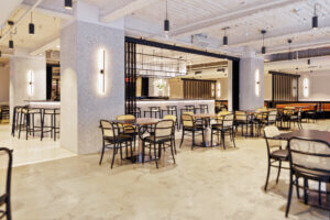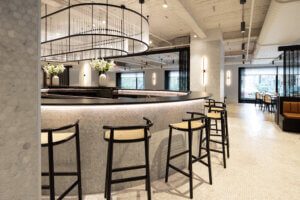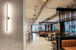 More floor-to-cieling windows offer an immersive Park Avenue experience from our quiet, uniquely private vantage point at the 2nd floor Grill. The central atrium bar is the anchor of the 2,500 square foot space, equipped with a full kitchen for a memorable dining experience. Step away to our separate dining room, or browse the attached marketplace.